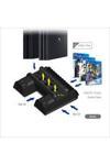 PlayStation 4 konsolunuz için özel olarak tasarlanmış, slim ve pro modellerle tam uyumlu fanlı stand ve oyun kolu ile oyun deneyiminizi geliştirin; Kablolu bağlantı özelliği sayesinde, konsolunuzun şarjını kolayca sağlayarak oyun sırasında kesintisiz bir deneyim yaşatır; Soğutucu özelliği ile konsolunuzun aşırı ısınmasını önler ve daha uzun ömürlü kullanım sağlar;