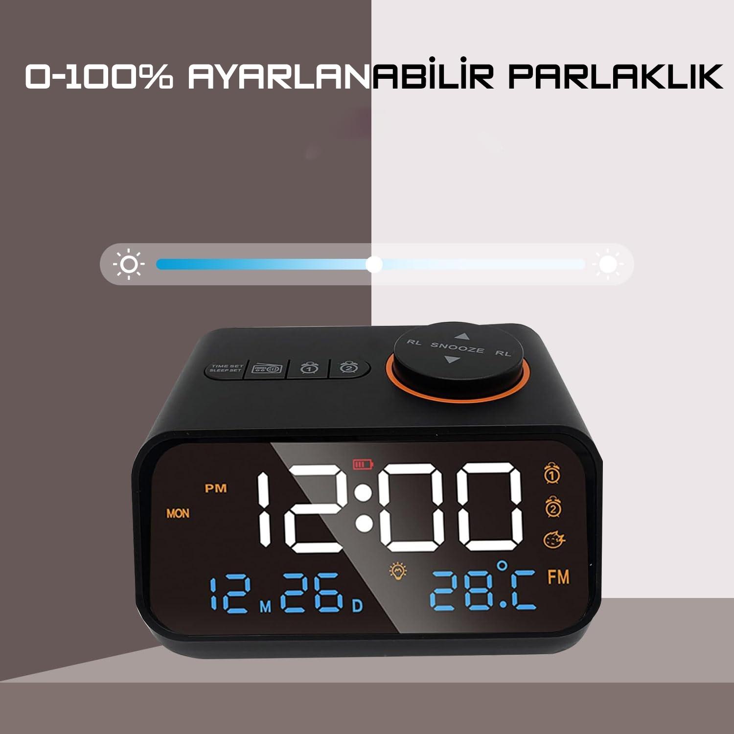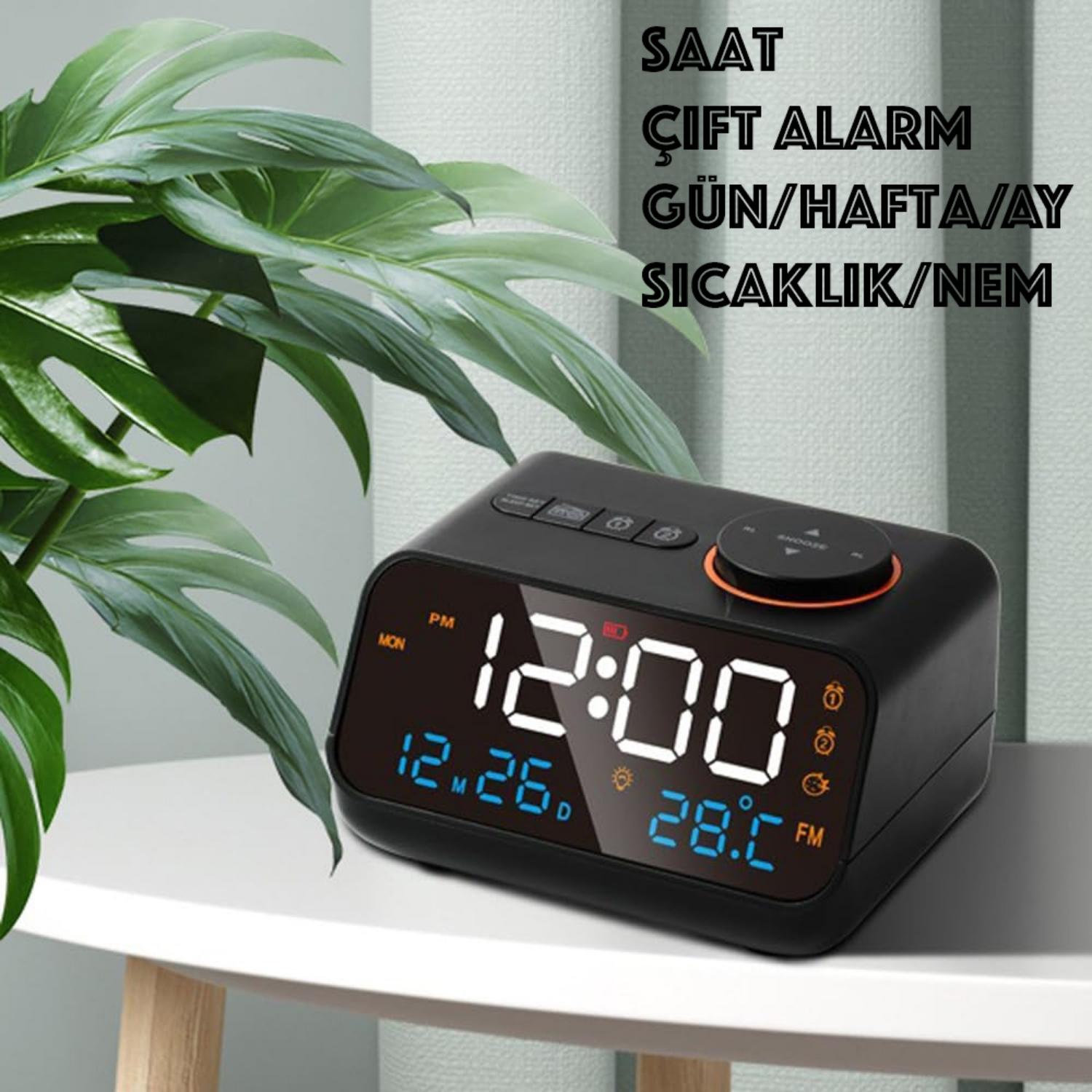 Plentiful Dekoratif LED Dijital Saat FM Radyo 2 Alarm Sıcaklık ve Nem Göstergeli Pilli Saat