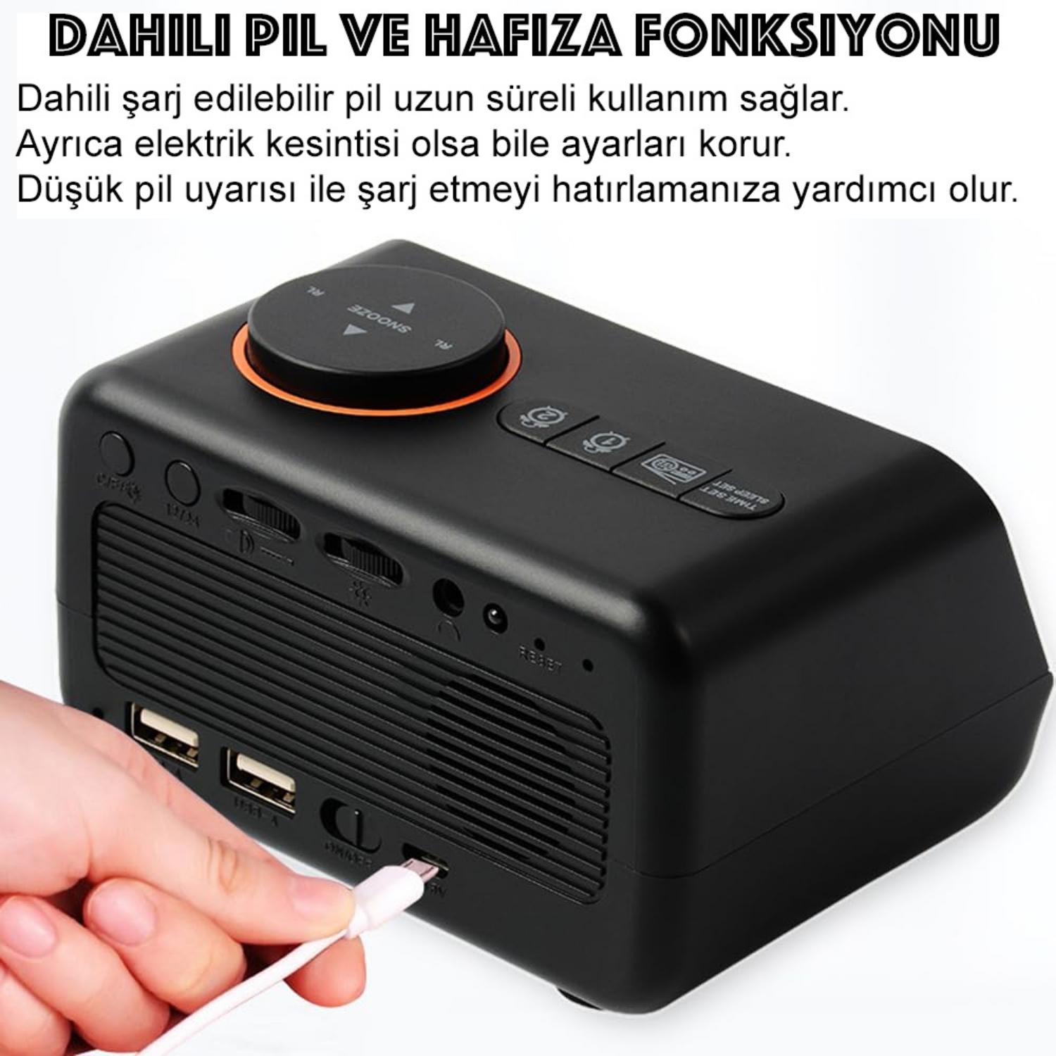 - ŞARJLI DAHİLİ PİL: Radyolu çalar saatin dahili pili vardır ve USB Type-C kablosuyla şarj edilir. Her yere taşıması ve yerleştirmesi kolaydır