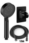 Plodna House Tayzikli Yüksek Basınçlı Siyah Duş Başlığı Yapışkanlı Duş Mafsalı 150Cm Hortumlu Duş Seti