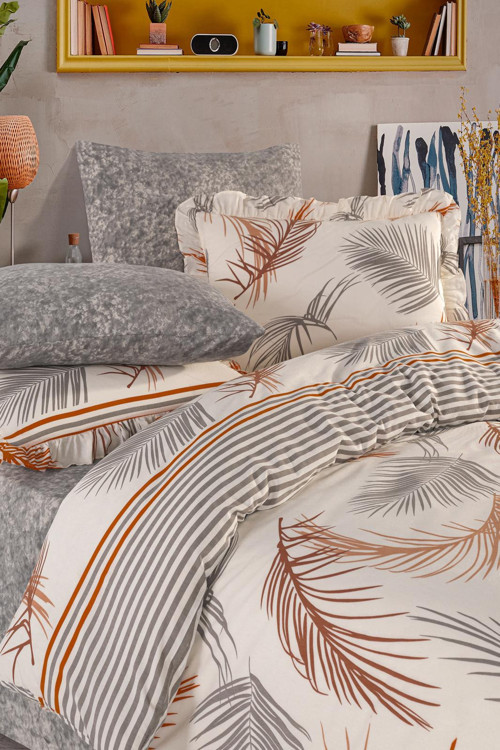- -Ürün içeriği: 1 adet nevresim (200 x 220), 2 adet günlük yastık (50 x 70), 2 adet volanlı yastık (50 x 70), 1 adet çarşaf (240 x 260).