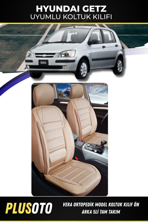 Hyundai Getz Uyumlu Vera Serisi Bej Oto Koltuk Kılıfı 5li Takım Set M-368 Bu ürün arka koltuk oturma kısmı tek tarça ve sırt kısmı 2+1 veya tek parça olan binek model araçlara uyumludur.