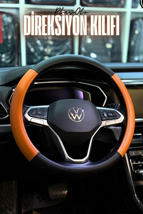Nice Shop Volkswagen Bora Uyumlu Elit Geçmeli Direksiyon Kılıfı Taba