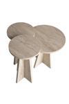 - 5 yıl garantili yapısıyla uzun süreli kullanım güvencesi sunar.; - Suntalam malzemesi sayesinde dayanıklı ve kolay temizlenebilir bir yapıya sahiptir.; - Üç parçadan oluşan set, farklı ihtiyaçlara uygun esneklik sağlar.; - Yuvarlak tasarımı ile modern dekorasyon anlayışına mükemmel uyum sağlar.; - Yerli üretim olup, Türk malı kalitesini evinizin her köşesine taşır.; - Bu set, mekanınıza şık bir dokunuş eklerken fonksiyonellikten ödün vermez.; - Modern stil ve tema özellikleriyle çağdaş yaşam alanlarına estetik bir katkıda bulunur.;