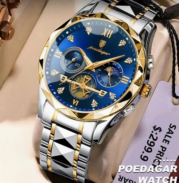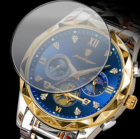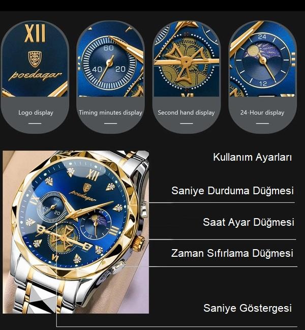 Poedagar Lüks Kronograf Su Geçirmez Paslanmaz Çelik Kol Saati