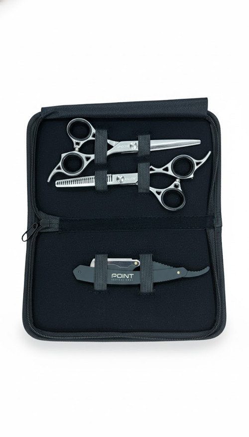 Point Profesyonel Çantalı 3'lü Makas Ara Makas Ustura Seti