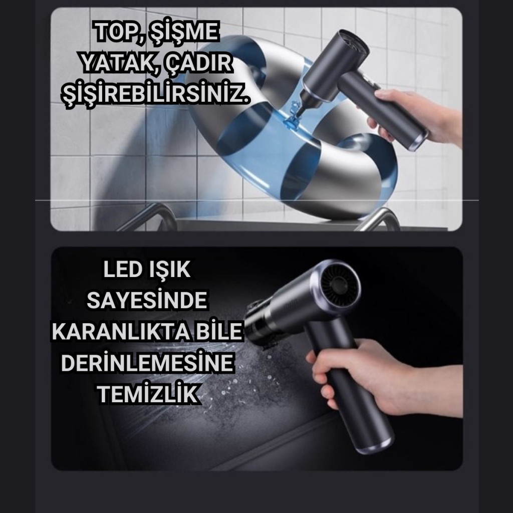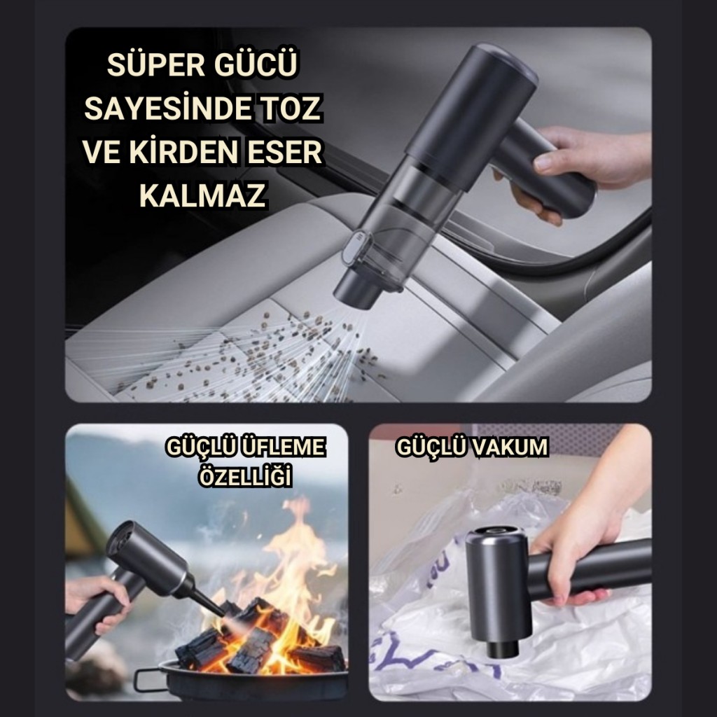 🔄 3 Modlu Kullanım: Hem emiş hem de üfleme gücü sayesinde araç içi temizlikte çok yönlü kullanım sunar.