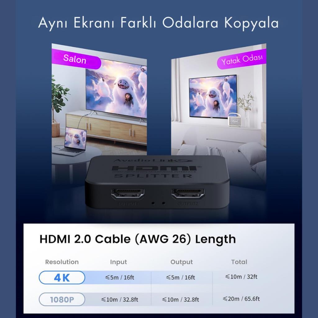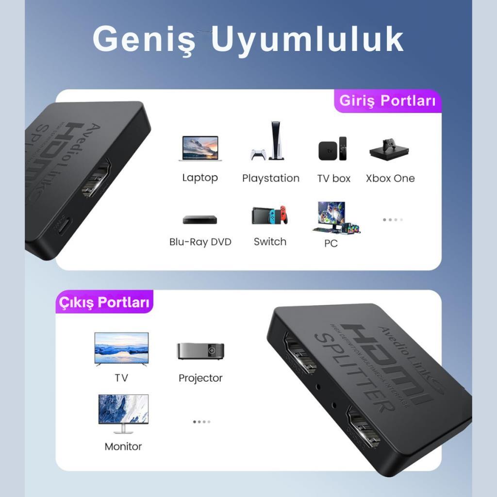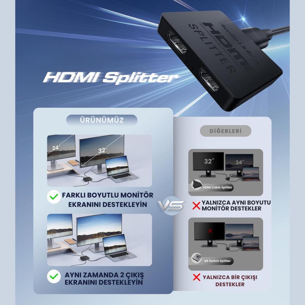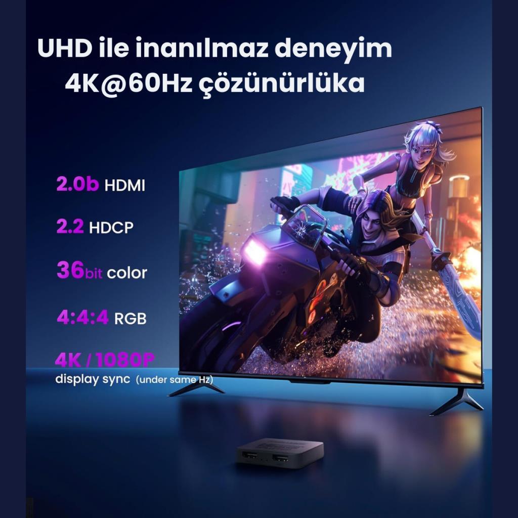 Polham 1mt HDMİ Kablolu 2in1 Çift Yönlü HDMI Switch Adaptör, 4K 60Hz, Çift Ekran Bağlantılı Çevirici