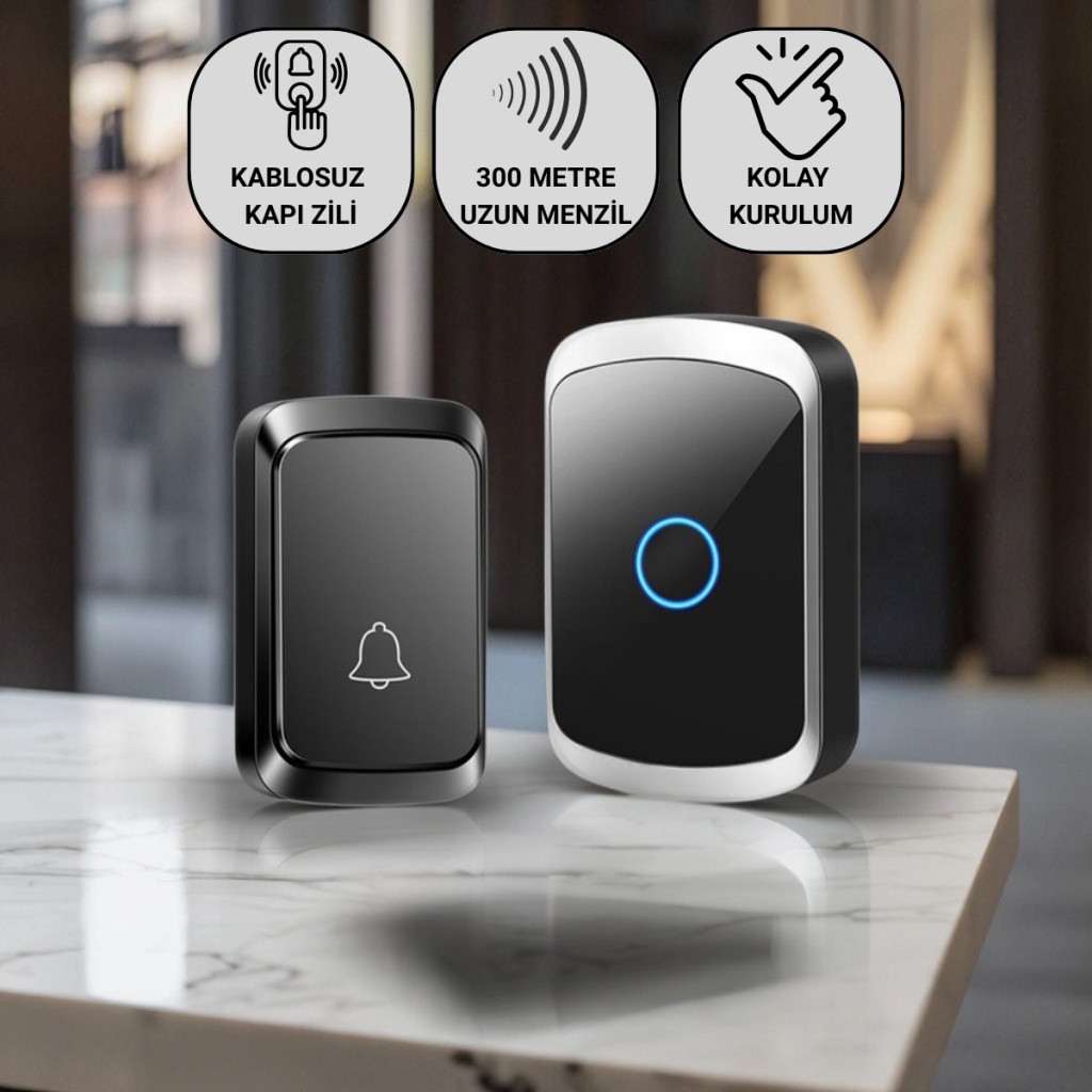 🔔 Kablosuz Kapı Zili – 300 Metre Çekim Mesafesi – Şık Tasarım & Kolay Kurulum