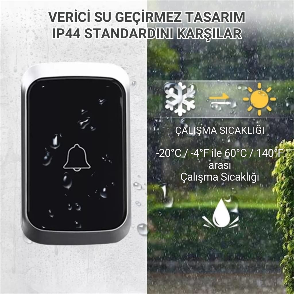 Ev, iş yeri, ofis ya da depo gibi yaşam alanlarınızda güvenliğinizi ve konforunuzu artırmak için tasarlanmış kablosuz kapı zili, gelişmiş teknolojisi ve şık tasarımıyla günlük hayatınızı kolaylaştırır. Kablo karmaşası, zahmetli montaj ve sınırlı çekim mesafesi sorunlarını ortadan kaldıran bu ürün, güçlü sinyal kapasitesi sayesinde uzun yıllar boyunca rahatlıkla kullanılabilir.