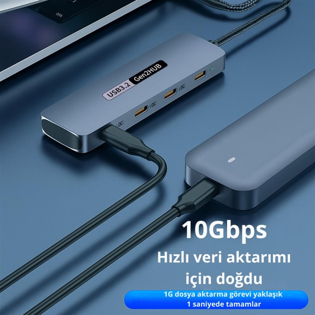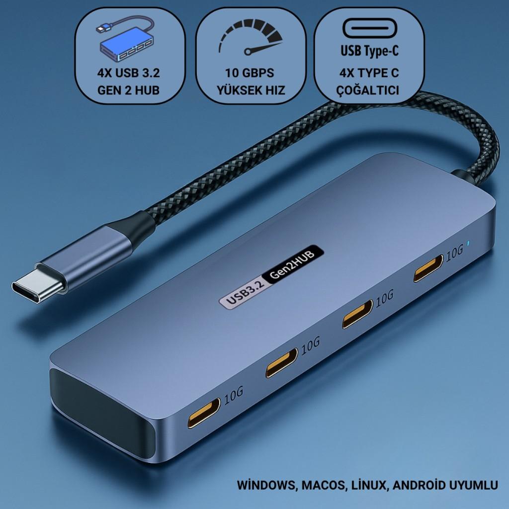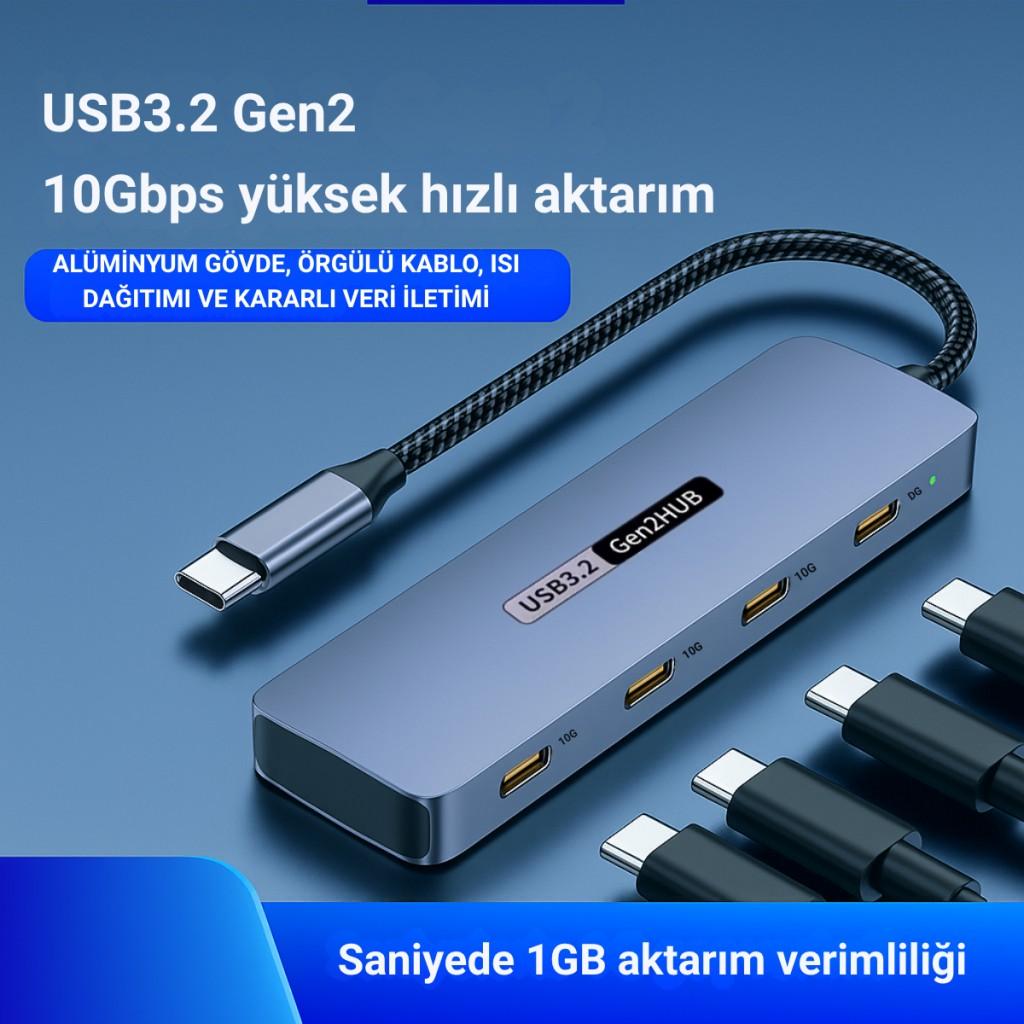 Polham 4in1 USB Type-C 4 Portlu USB 3.2 Gen 2 Hub ,10 Gbps Type C Çoğaltıcı, Tüm Sistemler İle Uyumlu