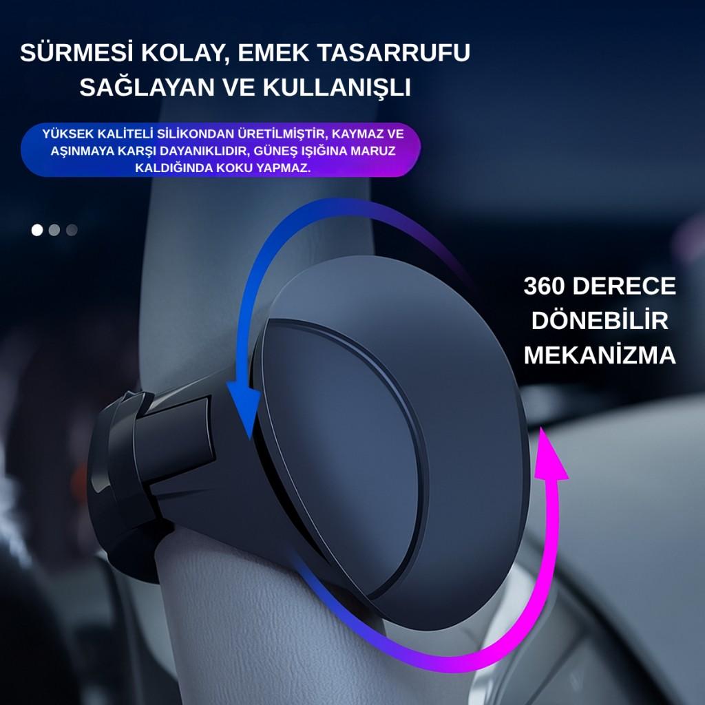 Tüm araç direksiyonlarına uyumlu bu 360° dönebilen direksiyon topuzu, manevraları çok daha kolay ve pratik hale getirir. Özellikle park ederken, dar alanlarda dönerken veya uzun yol sürüşlerinde konfor sağlar.