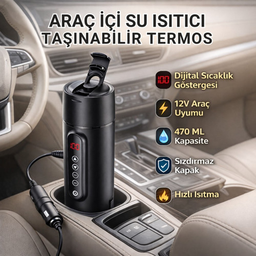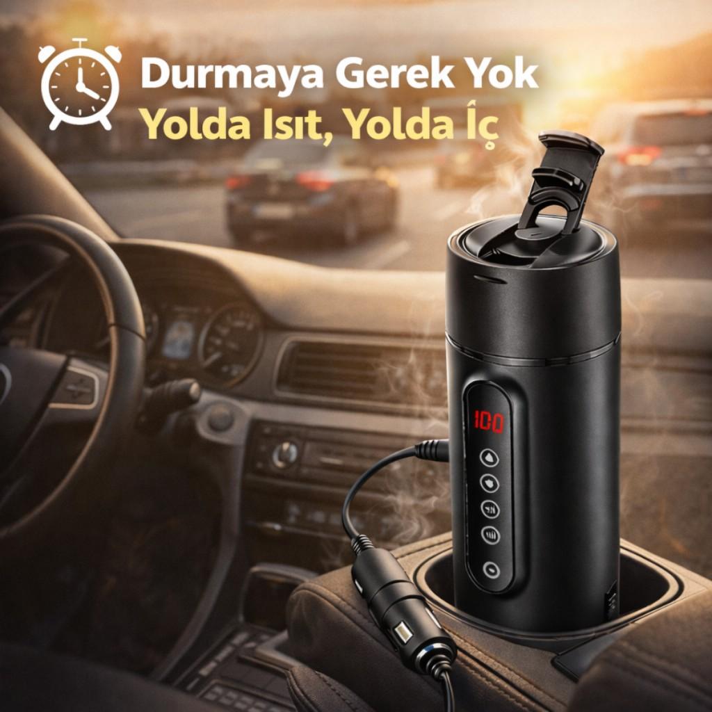 Araç içinde içeceğiniz soğumasın! Dijital sıcaklık göstergeli araç içi su ısıtıcı termos, kahve, çay veya sıcak suyunuzu istediğiniz sıcaklıkta tutmanızı ve ısıtmanızı sağlar. Uzun yolculuklar, yoğun trafik, kamp ve günlük kullanım için mükemmel çözümdür.