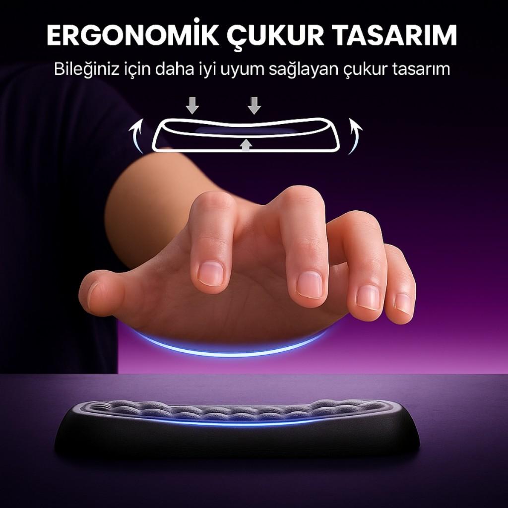Bilek hizasını doğal konumda tutarak ağrı ve karpal tünel sendromu riskini azaltır.