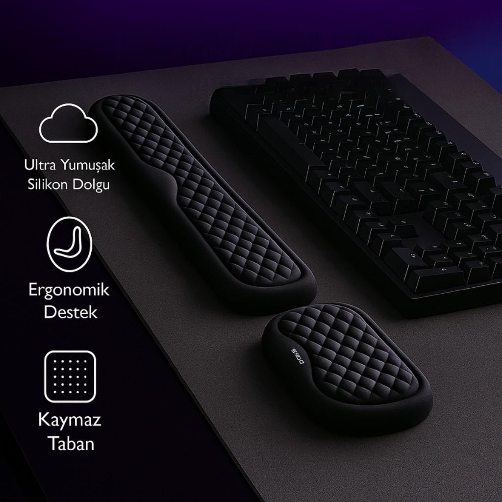 Polham Klavye ve Mouse İçin Ergonomik Bilek Destek Seti, Ultra Yumuşak Silikon Dolgulu Kaymaz, Bilek Yastığı