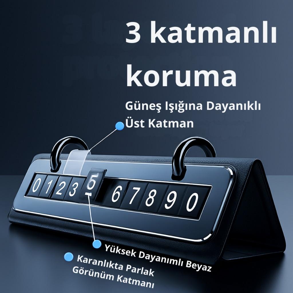 Polham Metal & Deri Gövdeli Gizli Açılır Kapanır Geçici Park Numaratörü – Gece Gündüz Net Görünür