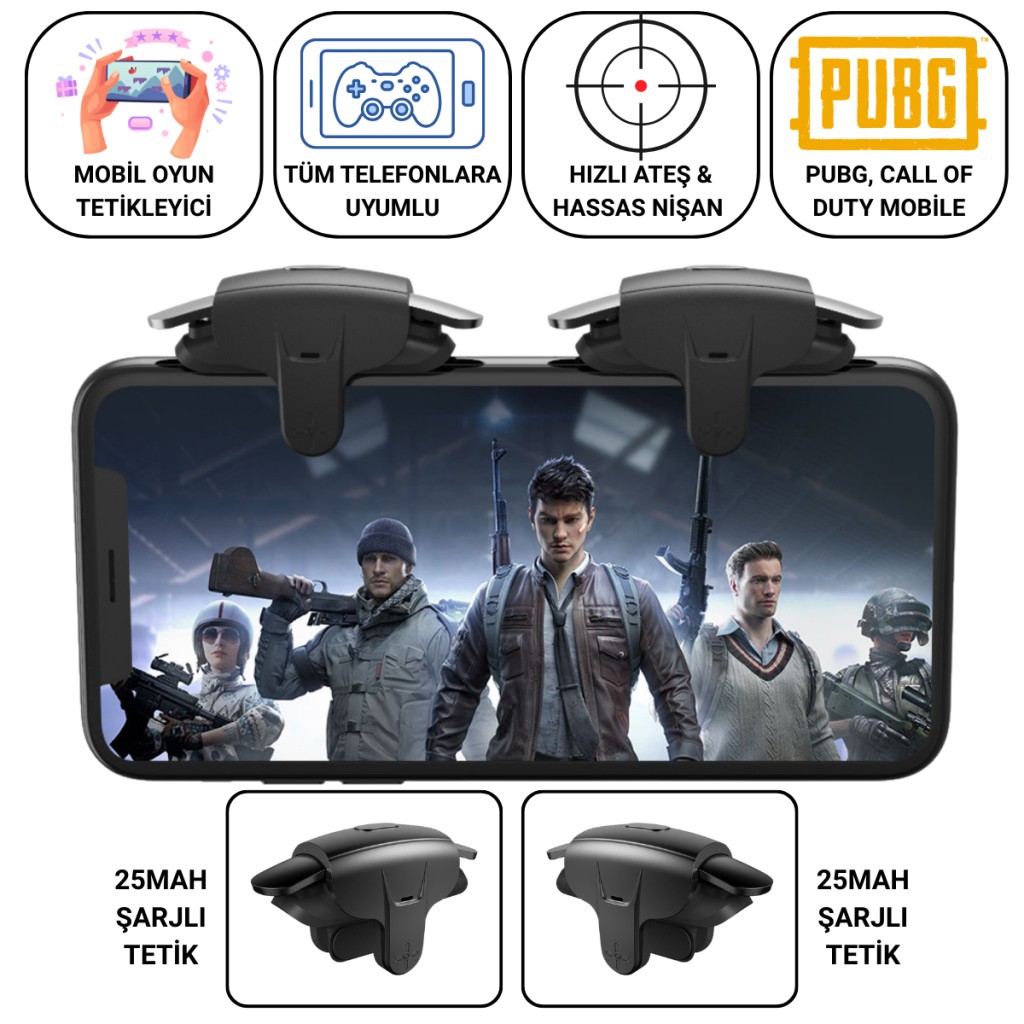 Polham Tüm Telefonlara Uygun PUBG ve Call of Duty Uyumlu Şarjlı Oyun Tetiği | Hızlı Ateş ve Hassas Nişan