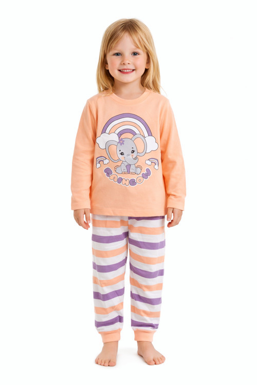 Kız çocukları için özel olarak tasarlanan bu pijama takımı, yumuşak dokusu ve rahat kalıbı sayesinde miniklere gece boyu konfor sunar.