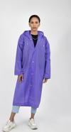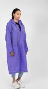 Sade ve şık tasarımıyla her ortama uyum sağlayan düz desenli mor yağmurluk ve rüzgarlık, günlük kullanım için idealdir