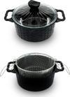 İçi ve dışı yanmaz ve yapışmaz granit kaplamadır.