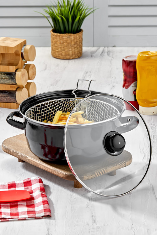 Ürün ismi: Emaye Kızartma Tenceresi 24 cm Siyah Fritöz Telli.