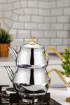 Polochef Nostaji Çaydanlık 18/10 Paslanmaz Çelik Orta Boy Gold Saplı