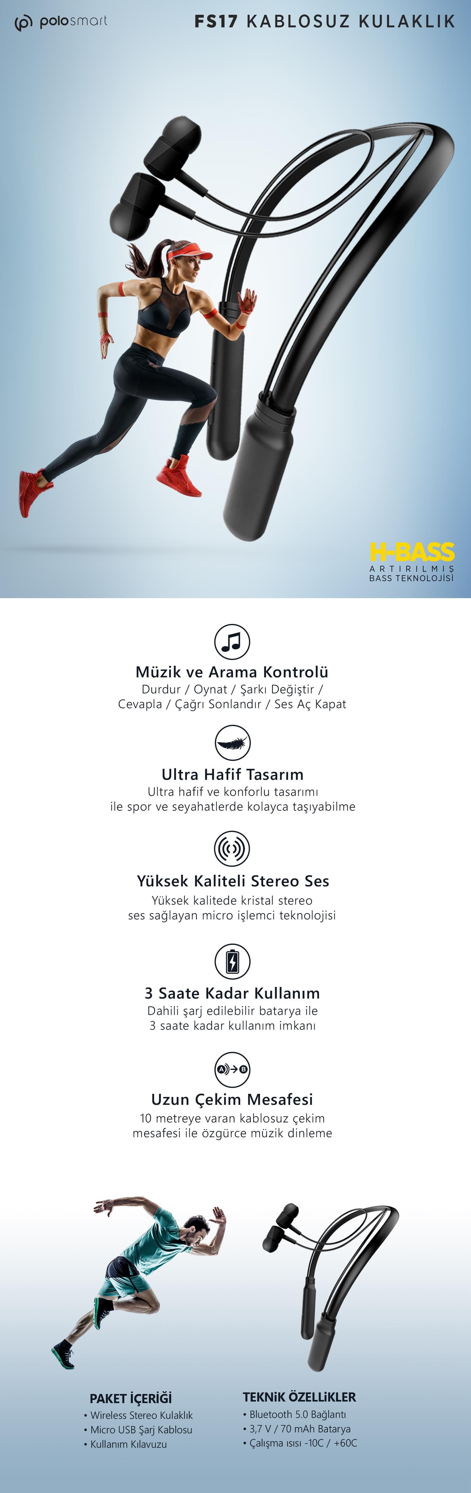 1 Adet Polosmart FS17 Kablosuz Kulakiçi Kulaklık