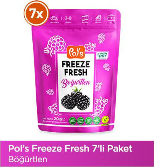 Pol’s Freeze Fresh dondurularak kurutulmuş böğürtlen, iyi tarım yöntemleri ile yetiştirilen doğal böğürtlen meyvesinin IQF (Individual Quick Freezing) ve freeze dry teknolojisi ile önce dondurulup sonra kurutulması ile elde edilen çıtır meyve atıştırmalığı alternatifidir.