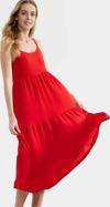 Şıklığı ve rahatlığı bir araya getiren bu midi elbise, yaz aylarının gözdesi olacak. Nefes alan polyester dokuma kumaştan üretilen elbise, gün boyu konfor sunuyor. Skater kalıbıyla her vücut tipine uyum sağlarken, kolsuz tasarımı sıcak havalarda serin kalmanıza yardımcı oluyor. Belden açılan eteği ise hareket özgürlüğü sağlıyor. Haki rengi ile her kombininize uyum sağlayan bu elbiseyi, günlük yaşamınızda, plajda veya akşam davetlerinde gönül rahatlığıyla kullanabilirsiniz.