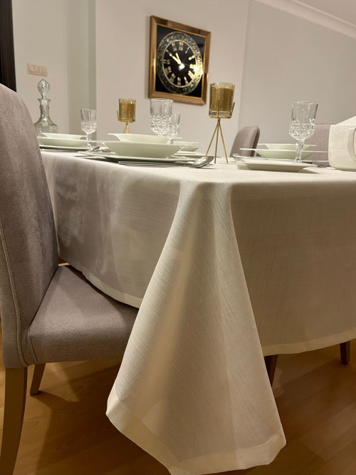 - Zeren Home Polyester Keten Simli Masa Örtüsü Krem