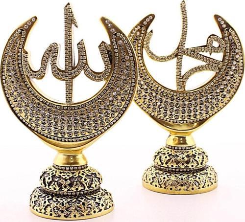 Polyester Üzerine Metal Kaplama Biblo 2'li Gold Allah Muhammed Hilal Orta Boy Biblo 20cm
