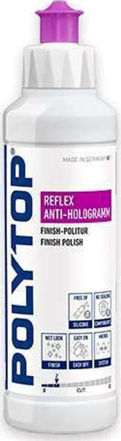 Reflex Anti-Hologram, hologramları, ince zımpara izlerini ve boya kusurlarını gidermek için kullanılan bir Hare Gidericidir.Bunlar kalıcı olarak çıkarılır ve Çizikler Doldurulmaz. Uygulama işlemi sırasında Özel Formülü sayesinde Ürün Sarfiyatı Azdır. İçerdiği ultra ince aşındırıcı bileşenler, parlak, ıslak bir görünüm veren derin bir parlaklık bırakır.