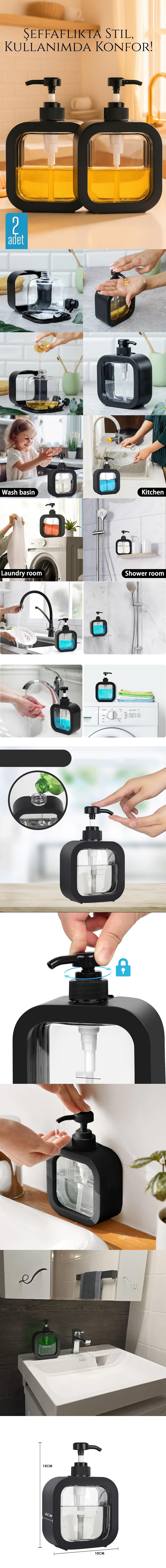 Bu 2’li pompalı dispenser seti, her biri 300 ml kapasiteli şeffaf gövdesi ve modern tasarımıyla banyonuza, kuaför salonunuza veya mutfağınıza estetik bir dokunuş katıyor.