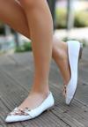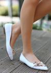 Butik Popi Beyaz Cilt Zincirli Babet Ayakkabı