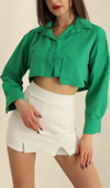 Poplin crop gömlek yeşil s3060, şıklığı ve rahatlığı bir arada sunar. İster günlük kullanım için isterseniz özel bir davet için tercih edebileceğiniz bu gömlek, gardırobunuzun vazgeçilmez parçalarından biri olmaya aday.