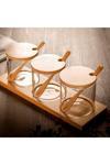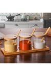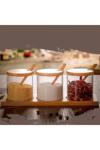 Ürün set halinde satılmakta olup 3 adet kaşıklı baharatlık ve bambu atlıktan oluşmaktadır; Baharatlıkların her biri 400 ml hacminde (8 cm x 8 cm) Ürünler borosilikat camdan imal edilmiştir; Altlık bambu olup uzunluğu 29 cm derinliği 10 cm; dir; Isıya dayanıklı, kullanımı kolay, taşınabilir özelliktedir; Gıda kullanımına uygundur silikonlu bambu kapakları sayesinde hava geçirmez özelliktedir; Kutulu ve balonlu naylona sarılı şekilde gönderimi yapılacaktır; Cam kısmı makinede yıkanabilir özelliktedir; Bambu kapakları nemli bezle silinmeli ve ardından kurulanmalıdır; Cam kısmı hassas olduğundan dikkatli kullanılmalıdır; Ürünler tarafınıza ulaştığında hasarlı ise kargo görevlisine tutanak tutturmayı ihmal etmeyiniz; ;;