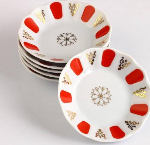 Porland 6 Kişilik Porselen Kahveci Çay Tabağı - Kırmızı Gold