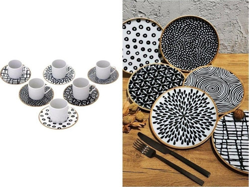 Porland Fractal Yuvarlak Pasta ve Kahve Fincan Takımı 6 Kişilik 18 Parça TAKIM İÇERİĞİ