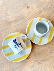 2 Adet Desen4 Sarı-Beyaz Renkli Fincan Tabağı
