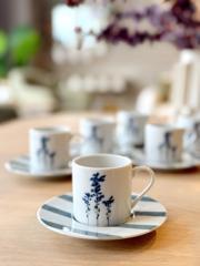 2 Adet Desen5 Mavi Çiçekli Beyaz Fincan