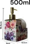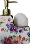 Porselen 500ml Sıvı Sabunluk Süngerlik Bölmeli Çiçekli