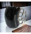Modern ve sıra dışı tasarımıyla dikkat çeken Porselen Beş Parmak Tasarımlı Siyah Kupa Bardak, kahve ve çay keyfinizi benzersiz bir şıklıkla taçlandırır. Parlak siyah porselen gövdesi ve metalik pirinç tokmak görünümündeki ergonomik kulpu ile hem kullanışlı hem de dekoratif bir parça sunar.