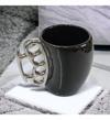 Porselen Beş Parmak Tasarımlı Siyah Kupa Bardak – Metalik Kulp Detaylı
