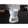 PORSELEN FONDÜ SETİÜrün Özellikleri Evde romantik anlar, keyifli akşamlar ve tatlı sunumlar için mükemmel bir tercih olan Porselen Fondü Seti, şık ve minimalist tasarımıyla dikkat çeker. Isıya dayanıklı porselen malzemeden üretilmiş bu set, çikolata, peynir veya karamel gibi lezzetleri eritirken mükemmel ısı dengesini korur.Alt kısmında yer alan mum haznesi, içerideki çikolata veya peyniri ideal sıcaklıkta tutar; böylece fondü keyfi uzun süre devam eder. Renkli saplara sahip iki adet metal çatal, hem pratik hem de estetik bir kullanım sunar. Bu sayede meyvelerinizi, marshmallow’larınızı veya atıştırmalıklarınızı hijyenik ve rahat bir şekilde fondüye batırabilirsiniz.Küçük boyutu sayesinde masa üzerinde fazla yer kaplamaz ve kolayca taşınabilir. Şık görünümüyle davet sofralarınıza zarif bir dokunuş katar, aynı zamanda özel günlerde sevdiklerinize hediye olarak da mükemmel bir seçimdir.Hem pratik hem de dekoratif yapısıyla mutfağınızın en zarif yardımcılarından biri olacak bu fondü seti, tatlı sunumlarına profesyonel bir dokunuş kazandırır. Paket İçeriği 1 adet porselen fondü kabı 1 adet alt stand 2 adet paslanmaz çelik fondü çatalı