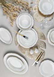 Porser Altın Yaldız Fulya Yemek Takımı 12 kişilik 53 Parça TAKIM İÇERİĞİ; 12 Adet Fulya Pasta Tabağı 22cm, 12 adet Fulya Servis Tabağı 27cm, 12 Adet Fulya Kase 17cm, 12 Adet Fulya Çukur Tabak 23cm, 2 Adet Fulya Oval Kayık 26cm, 1 Adet Fulya Oval Kayık 33cm, 1 Adet Tuzluk, 1 Adet Biberlik
