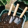3 Parça Mini Bahçe Alet Seti, Tohum Ekmek, Sukulentler Ve Saksı Malzemeleri Için Ahşap Saplı Çiçek Tırmığı Ve Küçük Kürek.