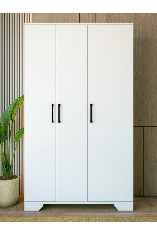 Ürün Açıklaması: Modern ve şık tasarımıyla evinize zarafet katacak, 3 kapaklı portmantomuz, geniş iç hacmi ve kullanışlı raflarıyla hem eşyalarınızı düzenlemenize yardımcı olacak hem de ferah bir görünüm sağlayacak.; Ölçüler: Derinlik: 36 cm, Yükseklik: 180 cm (ayak dahil), Genişlik: 105 cm, Ayak Yüksekliği: 7 cm ; Malzeme: Ürünün gövdesi 18 mm parlak beyaz suntalamdır.; Arkalık beyaz MDF'dir.; Ayaklar beyaz sert plastiktir.; ; Kolay kurulum: Matkap kullanımı gerektirmez, ürünü yalnızca tornavida ve çekiç ile montajlayabilirsiniz.; Ürün üzerindeki tüm delikler açılmış olup kurulum sırasında delme işlemi gerektirmez.; Kurulum için gerekli hırdavat seti (vida, minifix, çivi vb.; ) koli içerisinde yer almaktadır.; Detaylı olarak hazırlanmış montaj kılavuzu ile kısa sürede kurulum yapabilirsiniz.; ; Kalite: Ürünlerimizde 1. Kalite Yonga levha kullanılmaktadır.; TSE, Avrupa birliği EN, ISO 9001 ve FSC sertifikalarına sahiptir.; E1 standartları dahilinde, kanserojen madde içermez.; Tüm üretim proseslerinde detaylı kalite kontrolü yapılmaktadır.; ; Paketleme: Ürünün temiz ve hasarsız olarak tarafınıza iletilebilmesi için gerekli tüm önlemler alınmıştır.; Üründe kırılmayı önlemek için petek panel, köşebent ve balonlu naylon kullanılmaktadır.; Güçlendirilmiş oluklu mukavva ile kırılmalar en aza indirilmektedir.; ; Paket İçeriği ve Teslimat: Ürün taşıma kolaylığı ve dayanım sağlaması açısından 3 paket olarak gönderilmektedir.; Ürün kargo firmaları tarafından kata teslimat yapılacak şekilde paketlenmiştir.; ; Bakım Talimatı: Az miktarda deterjanlı bir bez ile siliniz.; Temiz bir bez ile kurulayınız.; ; Müşteri Desteği: Her türlü hasar ve eksik parça durumunda iletişime geçerek yedek parça talebinde bulunabilirsiniz.; Hasarlı parçaları bize tekrar göndermeniz gerekmez.; ; Güvenlik: Devrilebilen mobilyaların duvara sabitlenmesi önerilmektedir.; ; Not: Ürün demonte halde gönderilmektedir.; Ürüne sadece portmanto dahildir.; Görsel amaçlı kullanılan objeler dahil değildir.; Ürün renkleri ekrana göre değişiklik gösterebilir.; ;