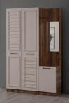 Polo Aynalı Portmanto 1. Sınıf Melamin Kaplı Yonga Levha malzemeden üretilmiştir.; Birleştirme aksesuarları olarak minifix ve kavela kullanılmıştır.; Üzerinde bulunan vizon renk dekor, MDFLAM üzeri PVC kaplamadır.; Ürün Kapaklarında frensiz menteşe kullanılmıştır.; Kulp materyalleri alüminyum olup mat siyah renktedir.; Ürün Vizyon rengindedir.; Ürün aynalıdır Ürün Kurulu Ölçüleri :Genişlik : 130 cm Yükseklik : 209 cm Derinlik: 40 cm Teslimat Ürünler teslim edildiğinde paketlerin dış yüzeyinde bir hasar söz konusu ise lütfen kargocu gitmeden hasar tespit tutanağı tutturunuz.; Hasar tespit tutanağı olmayan ürünlerle ilgili değişim işlemleri yapılamamaktadır.; Bulunduğunuz bölge mobil alan ise alışverişten önce lütfen bizimle iletişime geçiniz.; Garanti Bilgisi Üretim ve işçilik hatalarını kapsayan 2 yıllık garanti ile birlikte ürünün konforunu içiniz rahat bir şekilde yaşayabilirsiniz.; Ürün Avrupa TÜV CERT ISO 9001 kalite standardına uygun üretilmiştir.; Kurulum Hizmeti Ürünler kargo paketlerine de-monte olarak teslim edilir ve kurulum müşteriye aittir.; Müşterilerimizin mağdur olmaması için ürünlerimizi kolay kuruluma özel dizayn etmiş bulunmaktayız.; Bu yüzden paketlerin içerisinde kolay kurulum için kurulum şeması, vidaları ve aksesuarların montaj şeması aynı zamanda uyumlu malzeme torbası içermektedir.;