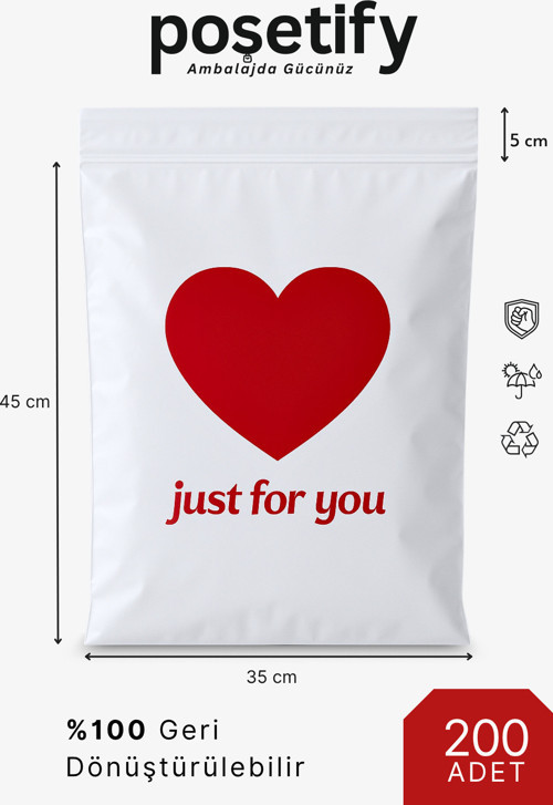Üzerindeki kırmızı kalp detayı ve 'just for you' baskısı, paketlerinize zarif bir dokunuş katar.