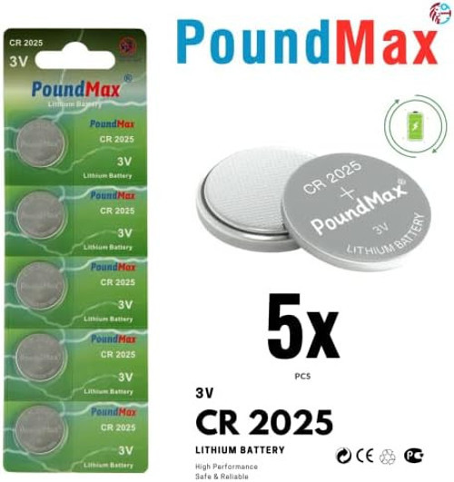 POUNDY PoundMax 5 x CR2025 lityum düğme pil, 3 V pil, sızdırmaz, cıva içermez, uzun ömürlü – Elektronik küçük cihazlar, araba anahtarları, uzaktan kumandalar, tıbbi ve akıllı ev cihazları için